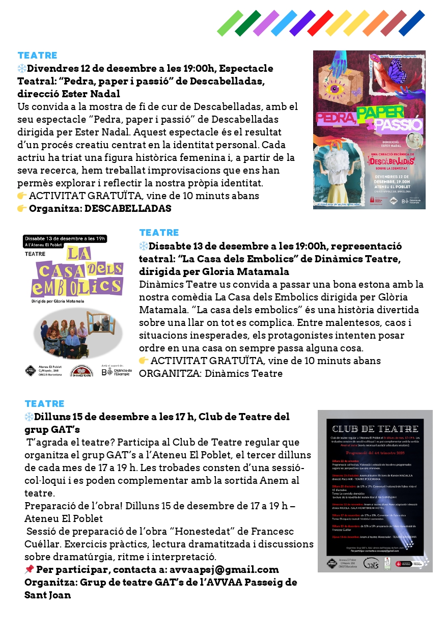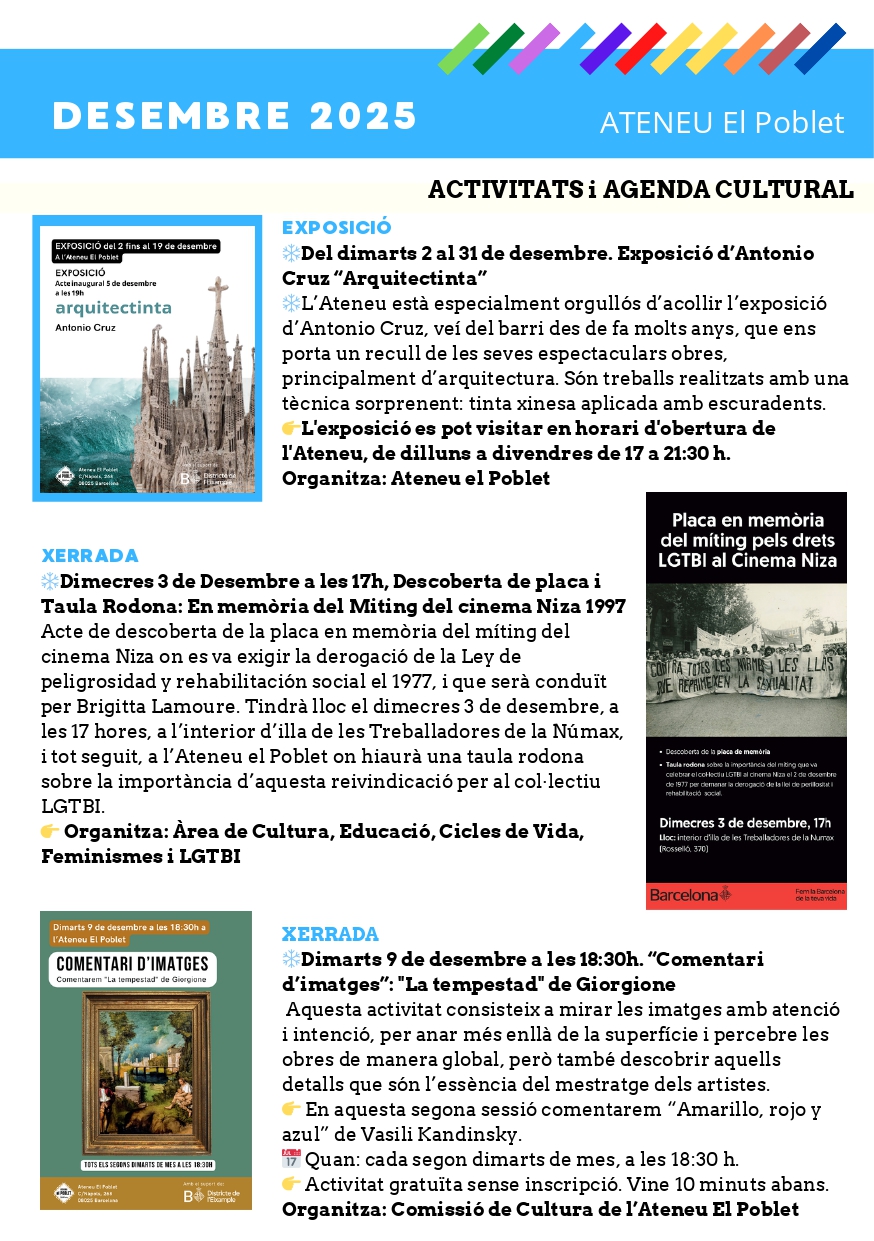 Aquest desembre, l’Ateneu El Poblet et convida a gaudir d’un mes carregat de cultura, creativitat i diversió per a tots els públics
