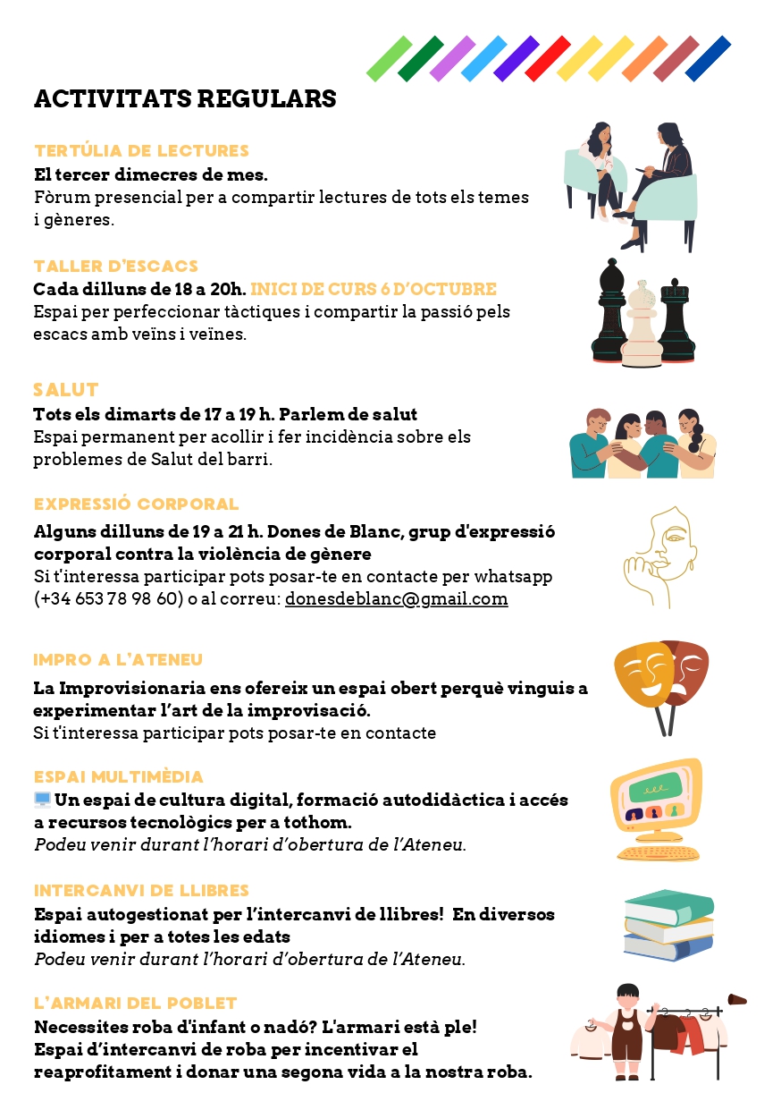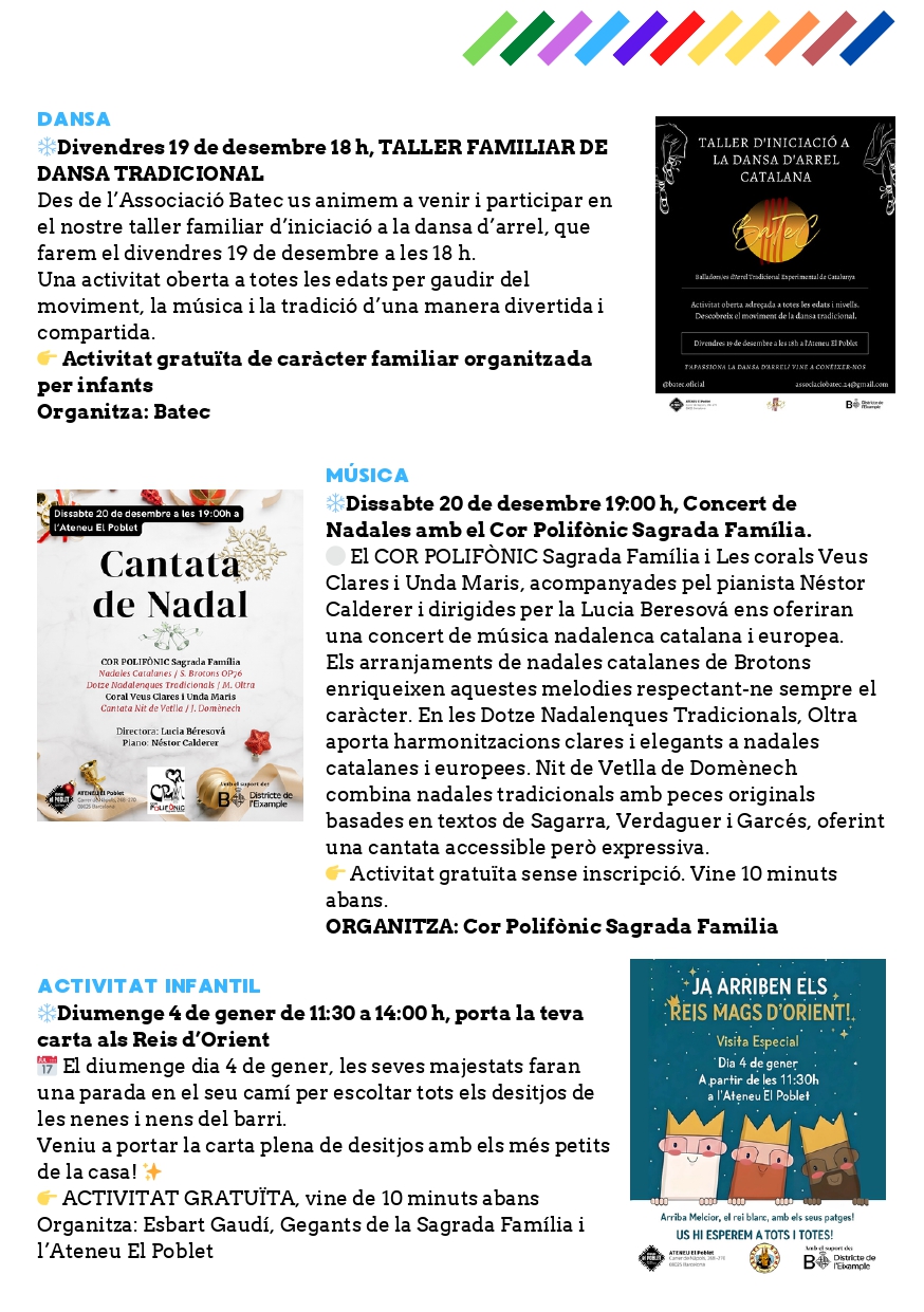 , trobaràs activitats que et permetran aprendre, emocionar-te i compartir experiències amb el barri