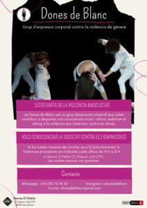 - Dones de Blanc, grup d’expressió corporal contra la violència de gènereLes Dones de Blanc és un grup de llarga trajectòria al barri que lluita contra la violència masclista. Si t’interessa participar a les seves sessions regulars o vincular-te al projecte, continua llegint. 🟣 Sessions regulars els dilluns de 19 a 21 h. 💪 EstàsView More